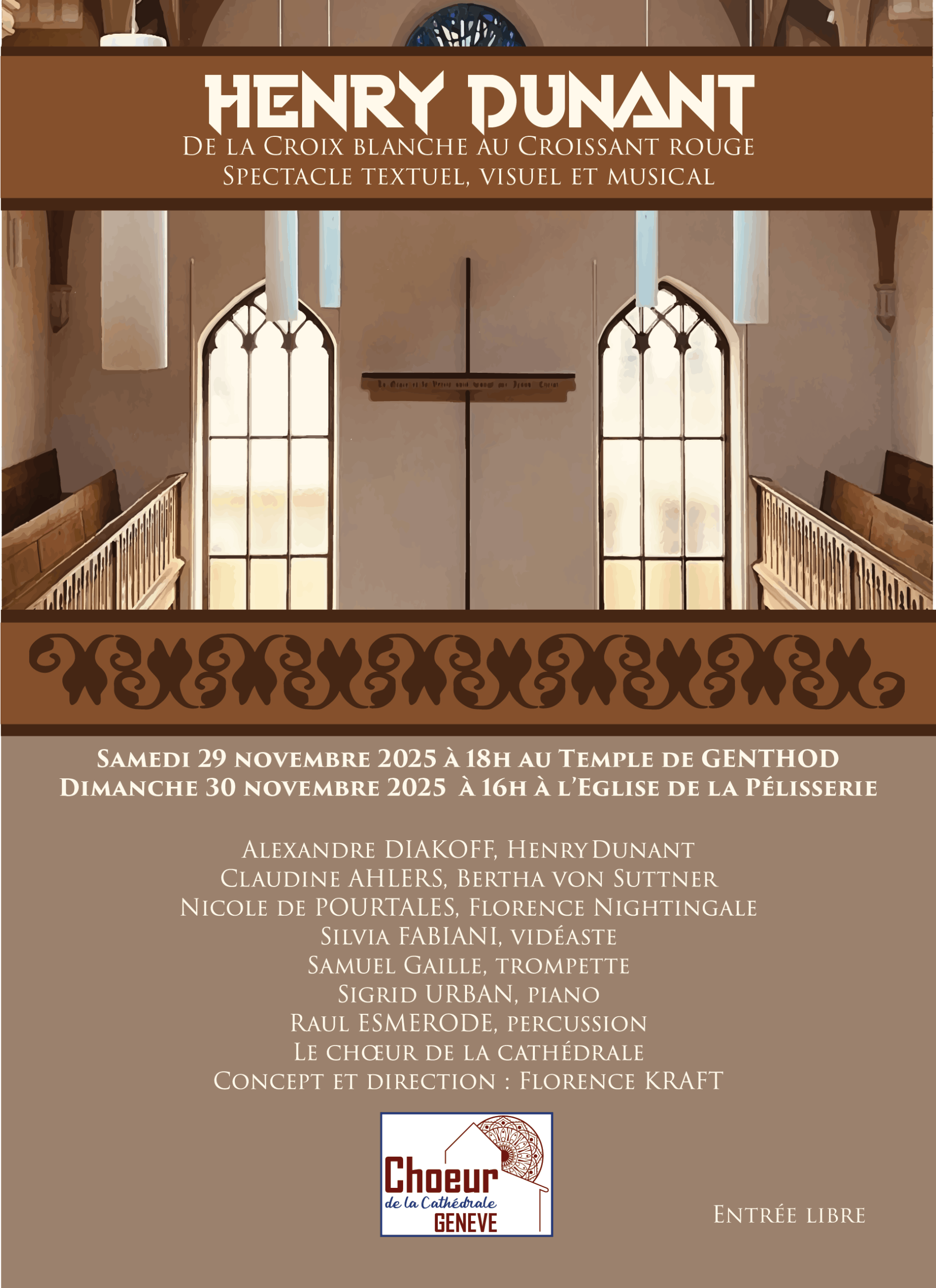 On Sunday, November 30 at 4 p.m., the Cathedral Choir will present its textual, musical, and visual performance “Henry Dunant: From the White Cross to the Red Crescent.” Free entry. Donations accepted at the end. Everyone is welcome!